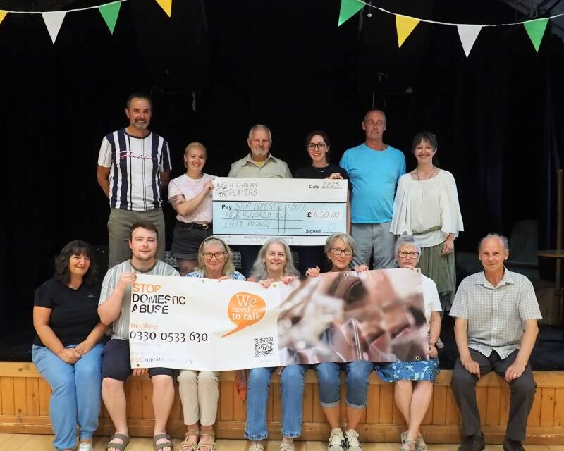 Highbury Players were very proud and pleased to present Lauren Smits, from Stop Domestic Abuse, with a cheque for £450 from donations given throughout their latest Production, Port Out, Starboard Home by Richard James