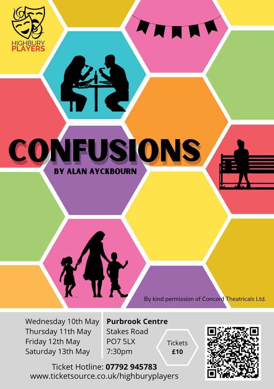 Confusions is a hilariously Chaotic play that interweaves five seemingly unrelated stories, each with its own set of eccentric characters and unexpected twists. From a harried housewife and her nosey neighbour to a disastrous village fete and a park bench encounter gone wrong, this play will keep you on the edge of your seat with laughter, drama and plenty of surprises. Highbury players performed four stories: Mother Figure, Between Mouthfuls, Gosforth's Fete and a talk in the park.